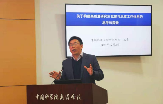 12月3日,武汉教育基地学生党建工作交流会在武汉分院行政楼326会议室召开。中国地质大学(武汉)党委研究生工作部部长、研究生院副院长王甫受邀作报告。武汉分院纪检组组长、分党组成员、武汉分院直属单位纪委书记、武汉教育基地管委会副主任蔡长塔,武汉分院全体教育管理干部,以及院属武汉地区各培养单位学生代表参加会议。会议由武汉分院教育处处长、武汉教育基地办公室主任杜永成主持。
