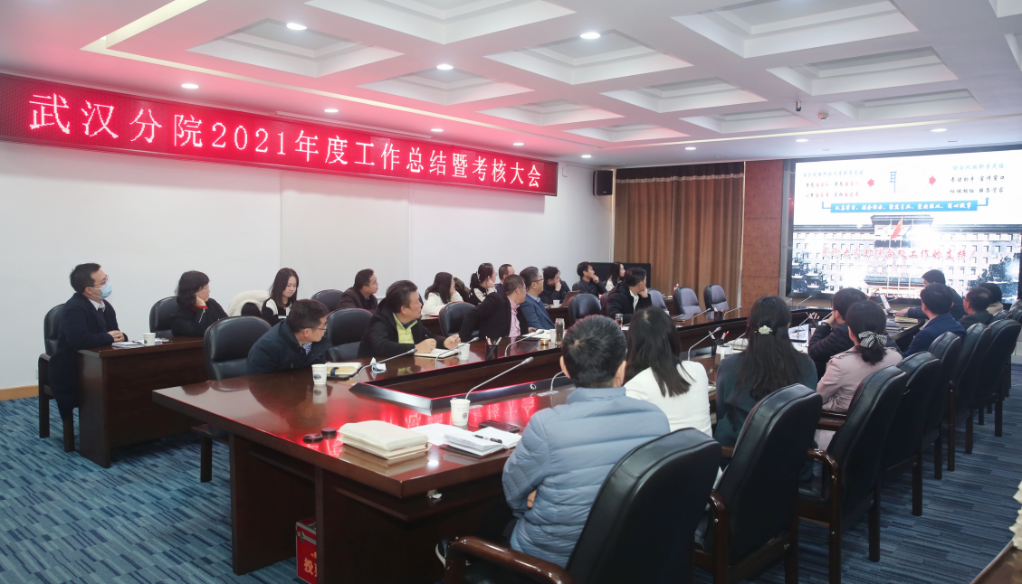 12月14日,武汉分院召开分院机关2021年度工作总结暨考核大会。武汉分院分党组书记李海波,院长、分党组副书记袁志明,纪检组组长、分党组成员蔡长塔出席会议,机关各部门负责人和机关全体工作人员参加会议。
