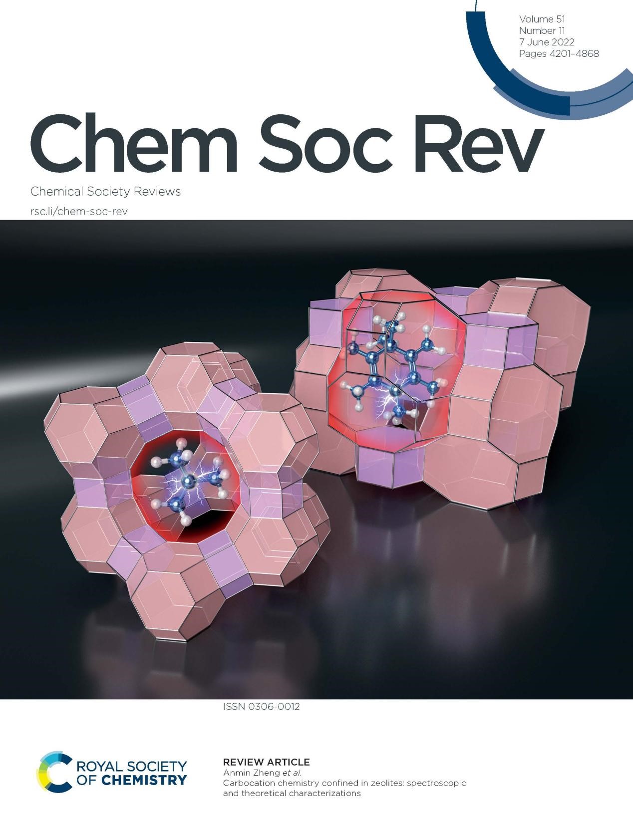 精密测量院郑安民研究团队近期应英国皇家化学会旗下Chemical Society Reviews 期刊的邀请,撰写了题为“Carbocation chemistry confined in zeolites: spectroscopic and theoretical characterizations”的综述论文,并被遴选为封面文章。论文从课题组围绕分子筛限域孔道中碳正离子催化的相关工作出发,系统地介绍谱学实验和理论计算在分子筛限域孔道中碳正离子化学的研究前沿与进展,阐述了分子筛限域孔道特性对碳正离子稳定性和反应性能的影响机制。
