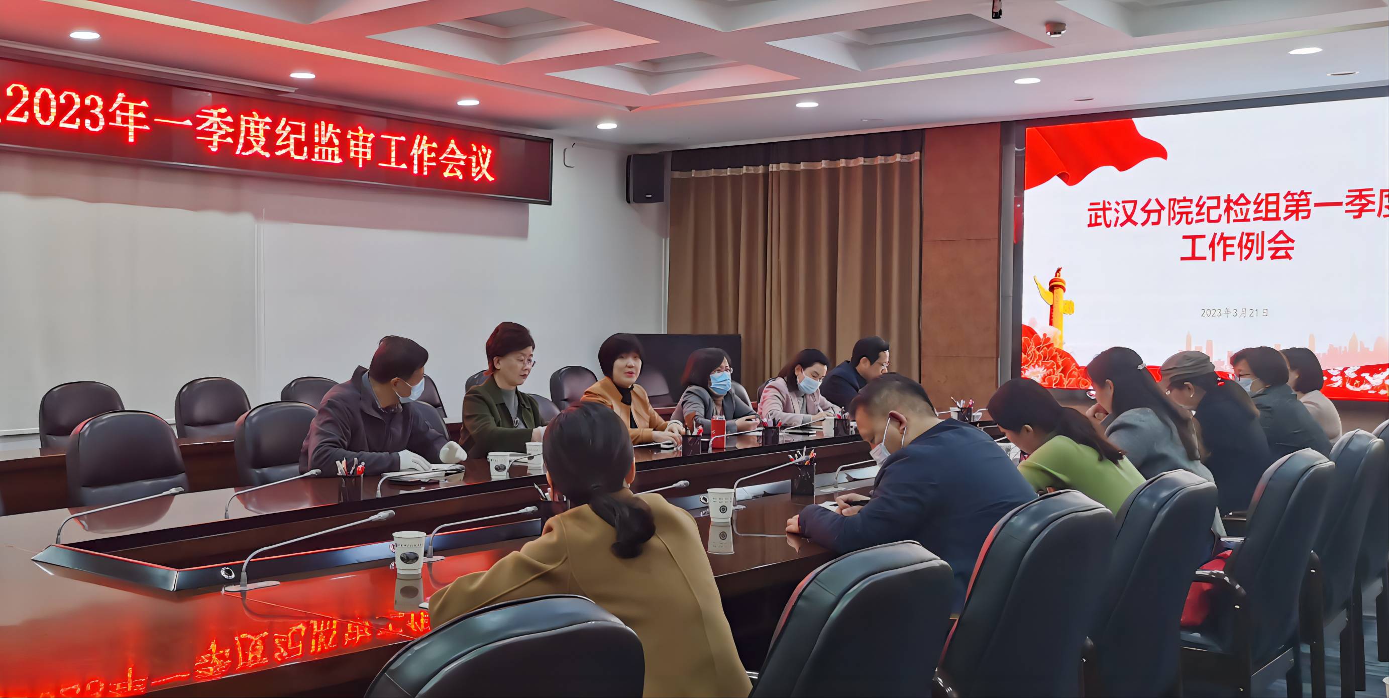 3月21日下午,武汉分院纪检组组织分院系统单位纪委召开2023年一季度纪监审工作会议,学习二十届中央纪委二次全会、全国纪检监察干部队伍教育整顿动员部署会议,研究部署年度重点工作。系统单位纪委书记、纪监审部门负责人和纪监审干部近30人参加会议,会议由武汉分院纪检组组长曾静主持。