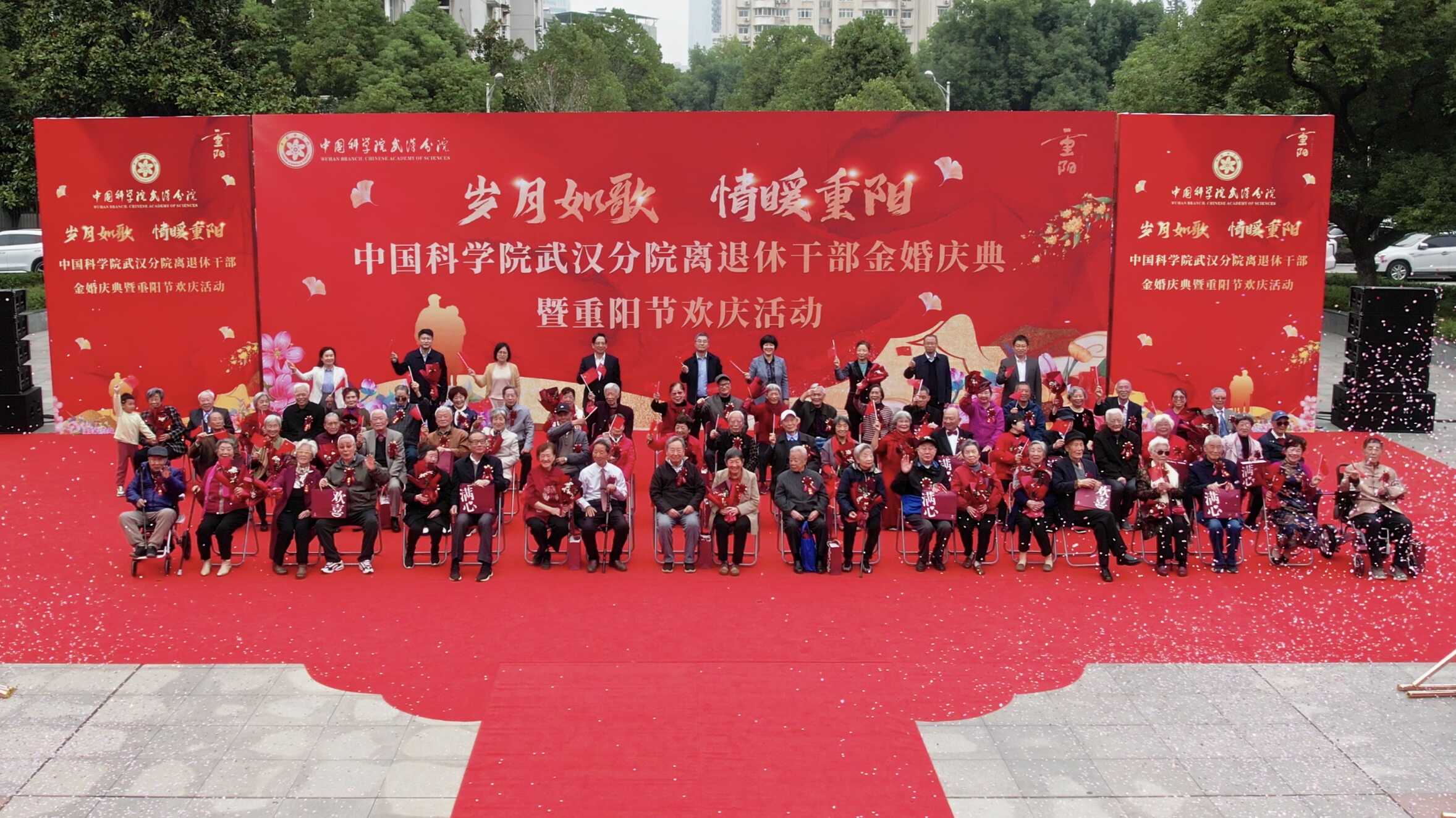 10月29日,在一年一度的重阳佳节来临之际,武汉分院举办离退休干部金婚庆典暨重阳节欢庆活动,院属在汉各单位金婚伉俪代表及其家属,各单位离退休干部、老年人大学武汉分校学员代表共400余人参加。武汉分院分党组副书记曾静致辞,分院分党组书记、院长李海波宣布开始,院属在汉各单位离退休干部工作分管领导莅临活动现场。