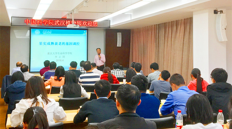 4月18日下午,应中国科学院植物种质创新与特色农业重点实验室主任韩月彭研究员的邀请,重庆大学生命科学学院院长李正国和安徽农业大学园艺学院副院长方从兵两位教授在武汉植物园1007会议室为师生作学术报告。当天下午,会议室座无虚席,报告会由韩月彭主持。