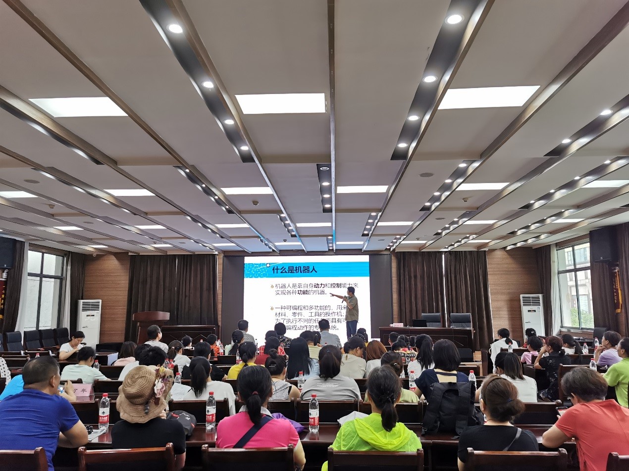 8月15日,由武汉市江汉区科学技术协会主办,中国科学院武汉文献情报中心、武汉教育电视台联办的“科学家江汉社区行”系列活动在江汉区民族街龙王庙社区举行。武汉文献情报中心特邀武汉科学家科普团团员、湖北省机器人创新战略联盟副理事长鲜麟波作了题为“机器人总动员”的科普讲座,江汉区科协主席杨艳、江汉区民族街工委副书记谌宗鹏、武汉文献中心学习传播中心主任刘毅和近百名社区居民及青少年参加了本次活动。