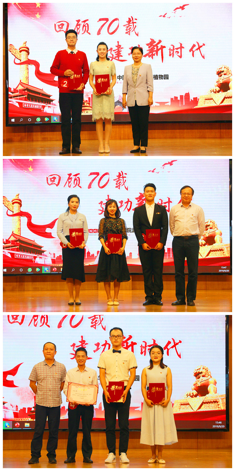 为庆祝中华人民共和国成立70周年和中国科学院建院70周年, 9月20日下午,武汉植物园举办了“回顾七十载,建功新时代”主题庆祝活动,讴歌中华人民共和国发展的光辉历程,用演讲比赛和文艺演出的方式抒发对祖国的热爱,表达作为一名中国人的荣耀和自豪,展示武汉植物园人蓬勃向上的精神风貌。武汉植物园党委委员、统战人士代表、全体职工观看了演出。