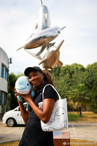 维纳斯﹒威廉姆斯(Venus Waillams)与江豚布偶合照