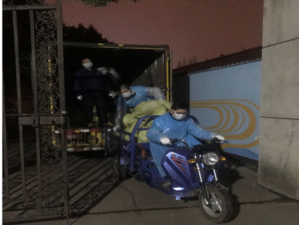 条鱼已经打包冰冻好。这时新的问题又来了,如何在封城期间把这批鱼顺利运到武汉又成了紧迫任务。按照当时规定,除了保障疫情的物资及武汉市必要的生活物资外,其他车辆无法进入武汉市。但是,经过水生所领导的紧急联系和沟通,湖北省及武汉市交管部门为运输车辆办理了通行证。与此同时,荆州一家抗疫物资运输公司,也积极支持饵料鱼运输。经多方积极配合,这批饵料鱼于3月3号晚上顺利抵达豚馆。