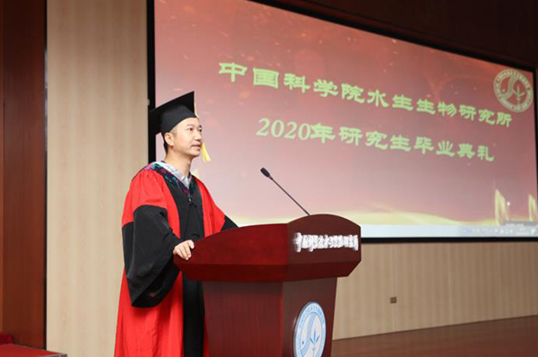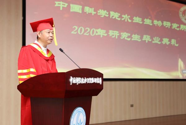 6月20日,中国科学院水生生物研究所举行2020年毕业典礼暨研究生奖学金颁奖仪式。副所长(主持工作)殷战研究员,党委书记、副所长解绶启研究员,副所长胡炜研究员,副所长缪炜研究员,党委副书记、纪委书记曾静,导师代表,33名毕业生代表以及毕业生亲友等出席仪式。毕业典礼和颁奖仪式由缪炜副所长主持。本次毕业典礼和颁奖仪式全程网络直播,未能到场的毕业生们齐聚云端,共同见证了这一难忘时刻。