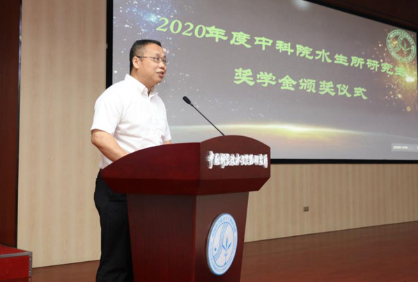 随后,进入奖学金颁奖仪式,解绶启书记宣布水生所研究生奖学金名单,5位所领导为获奖者颁奖。