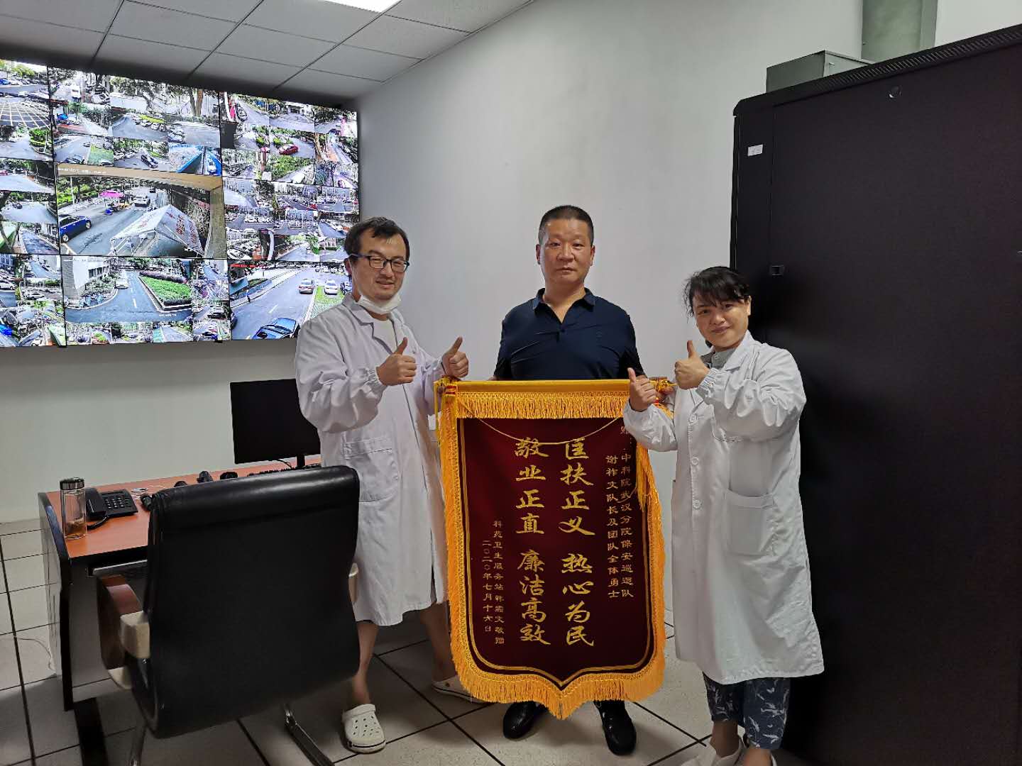 韩医生向小洪山治安巡逻队赠送锦旗