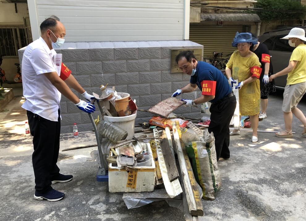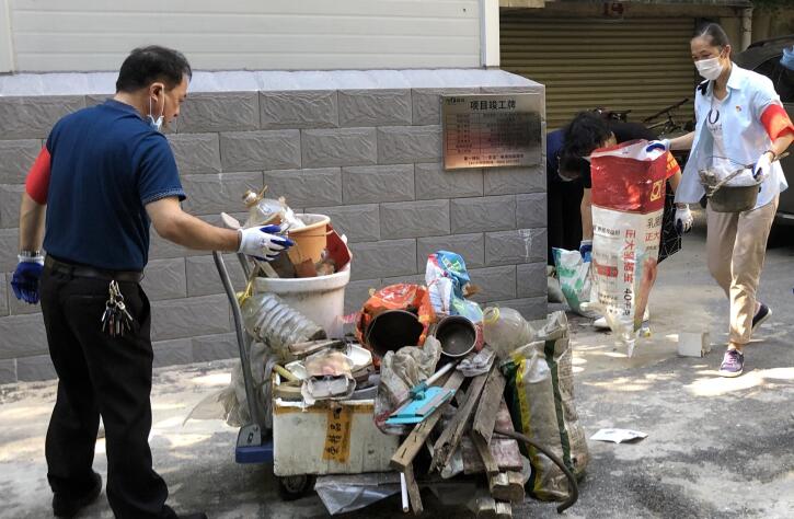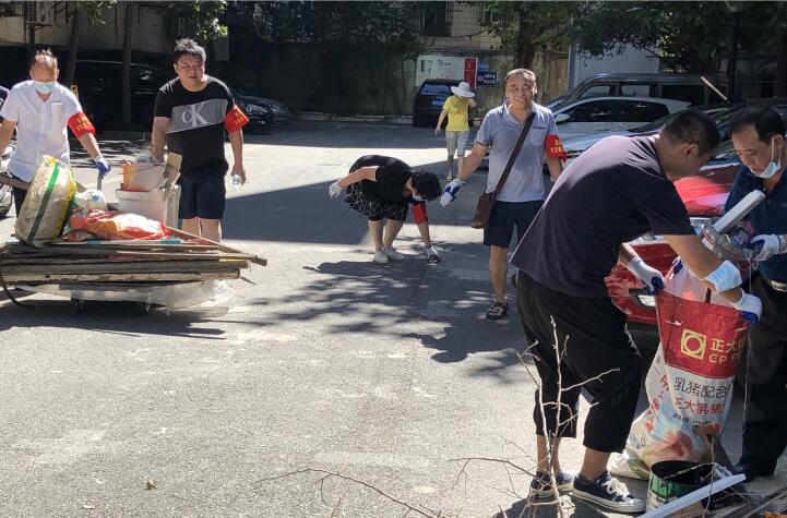 正值酷夏,8月14日武汉分院党员突击队8位党员以及分院机关党员王斌同志等9人,积极主动参加了茶港社区开展的环境整治爱国卫生大行动,对茶港社区军转小区五栋3个单元的楼道、900平米顶层平台进行了彻底的卫生清理。军转小区五栋只有两个单元安装了电梯,在清理没有安装电梯的楼栋旧物时,突击队成员在封闭、闷热的楼道里,不辞辛苦上上下下爬楼数十趟,将楼道堆放的各种存放多年废弃不用的旧物件清理转移到楼下;在楼顶清理杂物的队员们则顶着太阳暴晒,对900平米的顶楼平台进行全面的大清扫,将堆放的旧箱子、旧家具、旧衣服、盆盆罐罐一趟一趟从顶楼清运到楼下,再借用平板车运送到指定的垃圾堆放点。所有的人都是挥汗如雨,忙得没时间喝口水,干劲冲天。得到小区物业人员和居民的一致夸赞,说下沉党员的到来,真是为居民办实事的。