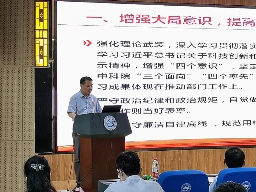 喻明以“认真履行一岗双责,严格规范科研行为”为主题作廉政教育报告。报告结合当前党风廉政建设新形势、新要求,强调要增强责任意识,认真落实“两个责任”,切实履行“一岗双责”,加强政治纪律、科技活动、科研经费使用、科研诚信等监督管理,并结合近年来通报的违法违纪案例,开展了警示教育和提醒。他强调,要正确理解和处理“放管服”关系,做实党风廉政建设,严格自律、坚守底线,公私分明、不抱侥幸心理,习惯在监督和约束中工作与生活。
