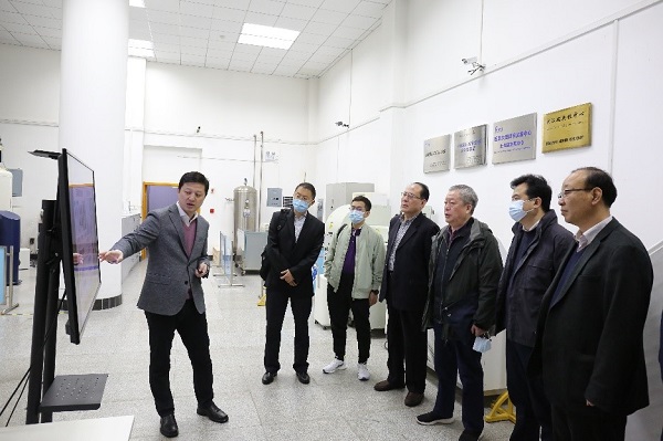 4月7日,科技部科技成果转移转化示范区调研考察组调研精密测量院人体肺部磁共振成像实验室。中国科技评估与成果管理研究会理事长郭向远,科技部成果转化与区域创新司副司长张勇强,湖北省科技厅成果与区域处处长陈自才,精密测量院院长罗志强,副院长周欣,技术发展处负责人施磊等陪同调研。