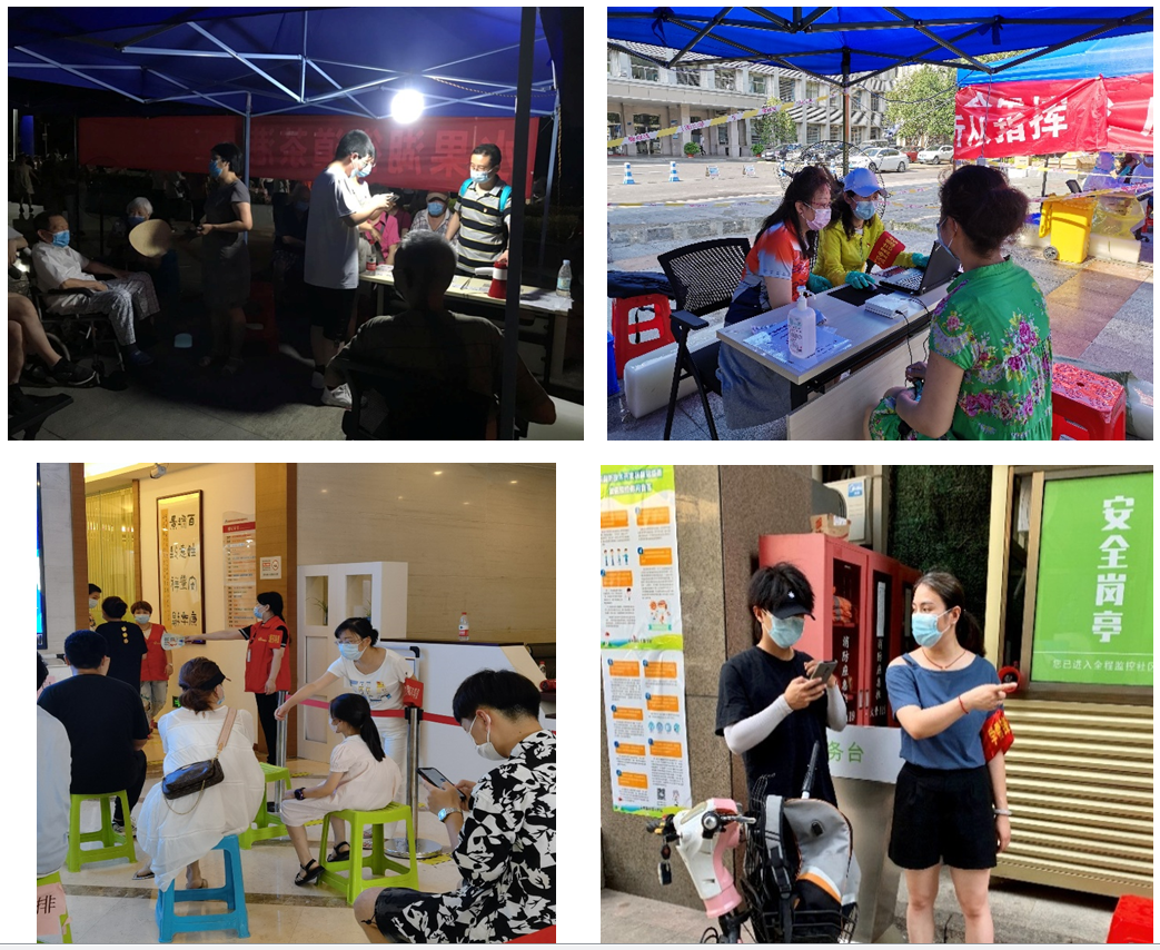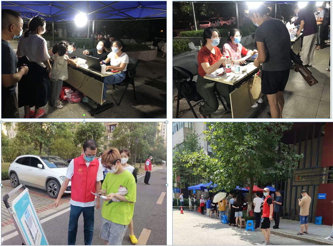 配合社区工作需要,精密测量院组织在职党员干部认真按照“双报到”要求,积极投身对口联系的水果湖茶港社区、青山碧园社区、以及党员干部居住地社区防控工作中去。8月4日,精密测量院迅速响应上级党组织工作部署,充分发挥管理党总支、党支部的战斗堡垒作用,迅速选派下沉茶港社区和碧园社区突击队队员,为社区充实了一线防控力量。院领导带队到联系点社区慰问社区干部、医护人员和下沉党员,调研指导下沉青山碧园社区党员开展工作。各党总支、党支部也积极动员党员就近下沉居住地社区,协助开展小区封控、人员筛查、体温监测、核酸检测、物资配送、环境消杀等工作。截至8月7日,已有50多名党员下沉社区开展防疫工作。