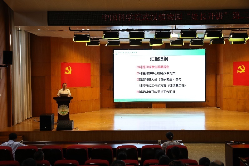 9月10日下午,武汉植物园“处长开讲”专题活动第二期在学术报告厅如期举行。党委书记、副主任尚纳新主持“处长开讲”活动,全园职工及研究生等80余人参加了活动。