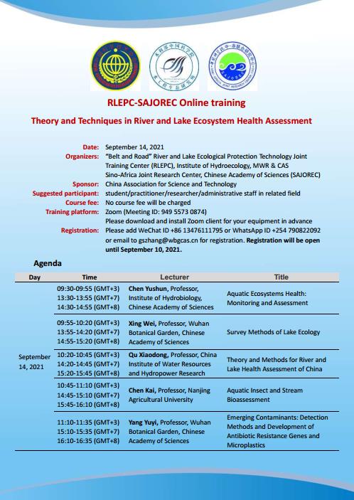 为积极应对全球新冠肺炎疫情影响,探索创新常态化疫情防控形势下的国际培训工作新模式,中国科学院中-非联合研究中心与“一带一路”河湖生态保护技术联合培训中心于2020年10月19日签署双边合作备忘录;双方秉持协商共建、资源共享的原则,已于去年成功举办“河湖生态系统监测理论与技术”线上+线下培训班,2022年还将围绕“河湖生态保护与修复技术”继续开展培训,进一步交流中国河湖生态保护经验,为“一带一路”沿线国家河湖生态环境管理助力。