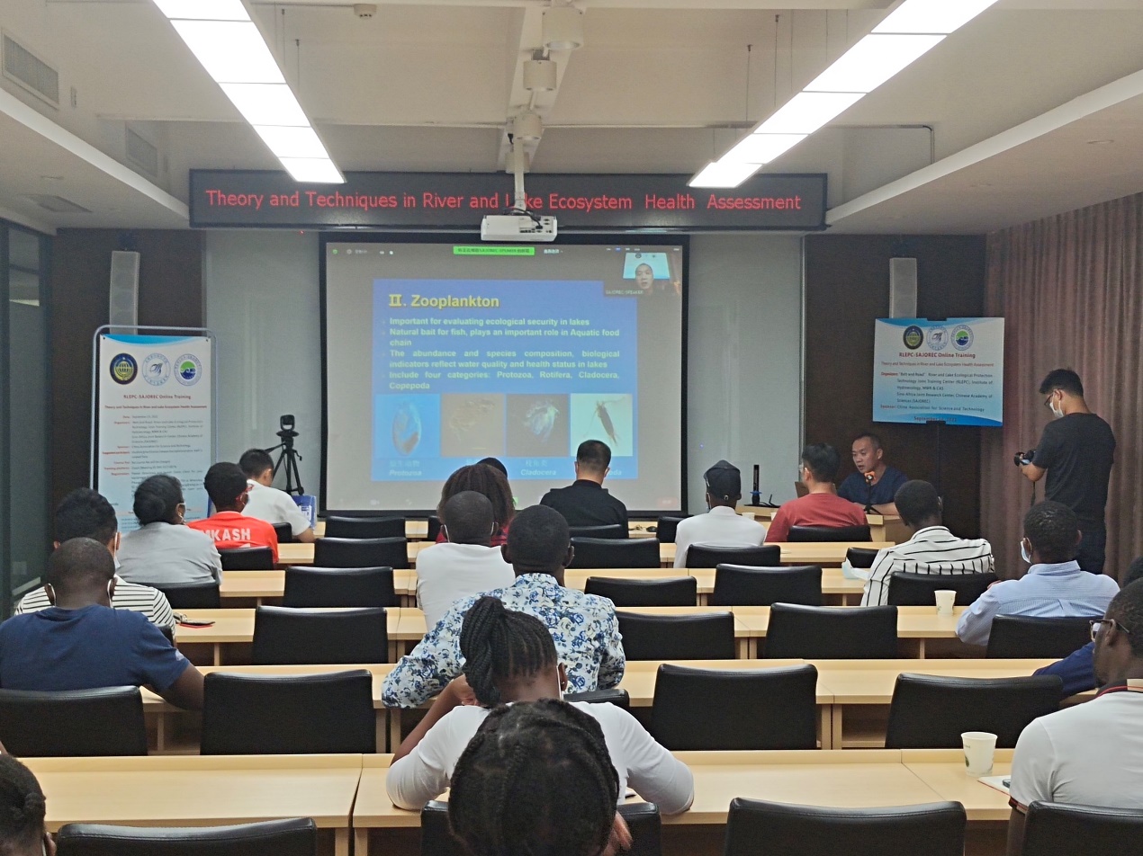 培训期间,武汉植物园湿地生态学科组邢伟研究员和环境基因组学学科组杨玉义研究员受邀同中国科学院水生生物研究所、中国水利水电科学研究院和南京农业大学等科研院所的专家围绕“湖泊生态调查方法”、“溪流生物评估方法”、“河湖生态健康评价方法”等5个专题开展授课。通过理论讲解、实例解析和现场答疑,专家们分享了我国在河湖水生态健康评价方面积累的丰富经验和取得的研究成果,探讨了高新技术和方法在非洲和东南亚国家河湖生态保护中的应用实践,线上线下学员讨论气氛热烈。