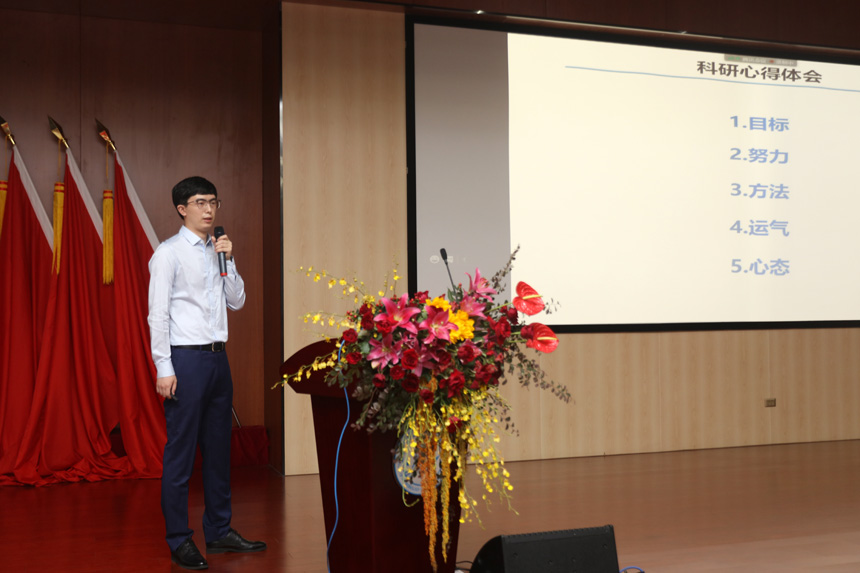 最后,朱俊佶博士的导师肖武汉研究员给研究生们分享了他认为朱俊佶能取得一定成绩的一点经验——坚持不懈、勤于思考、刻苦努力。肖老师实验室曾经在进行蛋白质多聚化实验中有长达一年时间都做不出来理想的结果,朱俊佶博士等人钻研文献,改进了制胶步骤以及样品制备等实验条件,使得该实验更加简单,实验方法发表后,吸引了武大等高校的课题组前来学习技术。肖老师表示水生所目前实验条件已处于世界先进水平,很多实验在水生所内就能完成,他鼓励水生所的研究生们要树立自己的信心,多读文献、多思考,坚持不懈、刻苦努力,同时保持好的心态,一定能取得成绩。