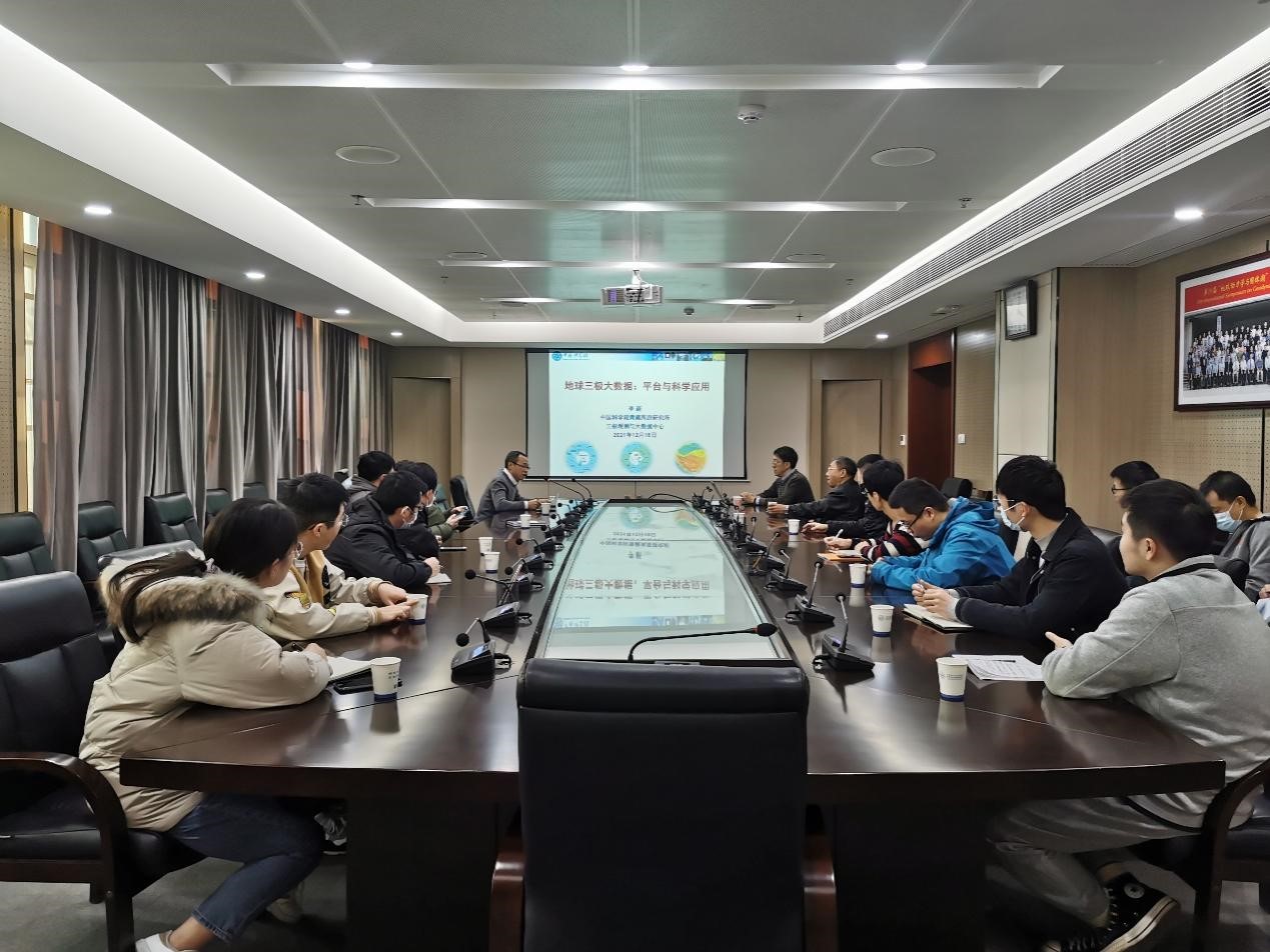 12月18日,应精密测量院大地测量与地球动力学国家重点实验室研究员江利明邀请,中科院青藏高原研究所研究员李新和郑东海到精密测量院访问交流,李新研做题为“地球三极大数据:平台与科学应用”的报告。精密测量院研究员杜耘、汪汉胜,中山大学教授钟敏钟敏等相关方向科研人员和学生20余人参加了此次学术交流会。