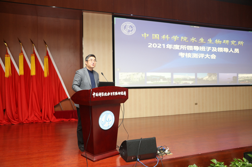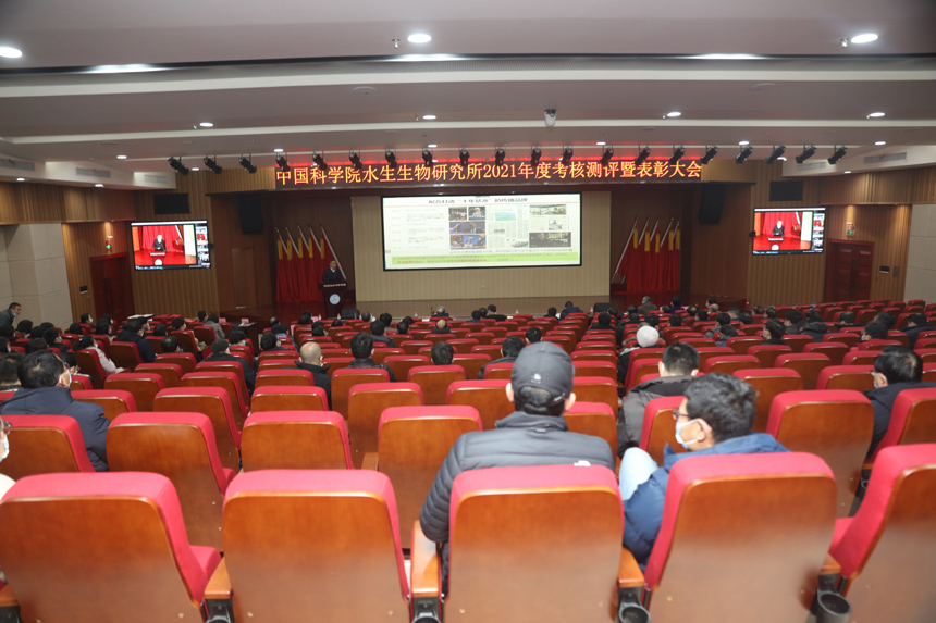 1月7日,中国科学院水生生物研究所召开2021年度考评暨表彰大会。曹文宣院士、桂建芳院士、所领导班子成员以及在职职工代表、离退休人员代表等参加了本次大会。中国科学院武汉分院党组书记李海波到会指导。 由于疫情防控需要,本次大会共设置1个主会场和3个视频分会场。