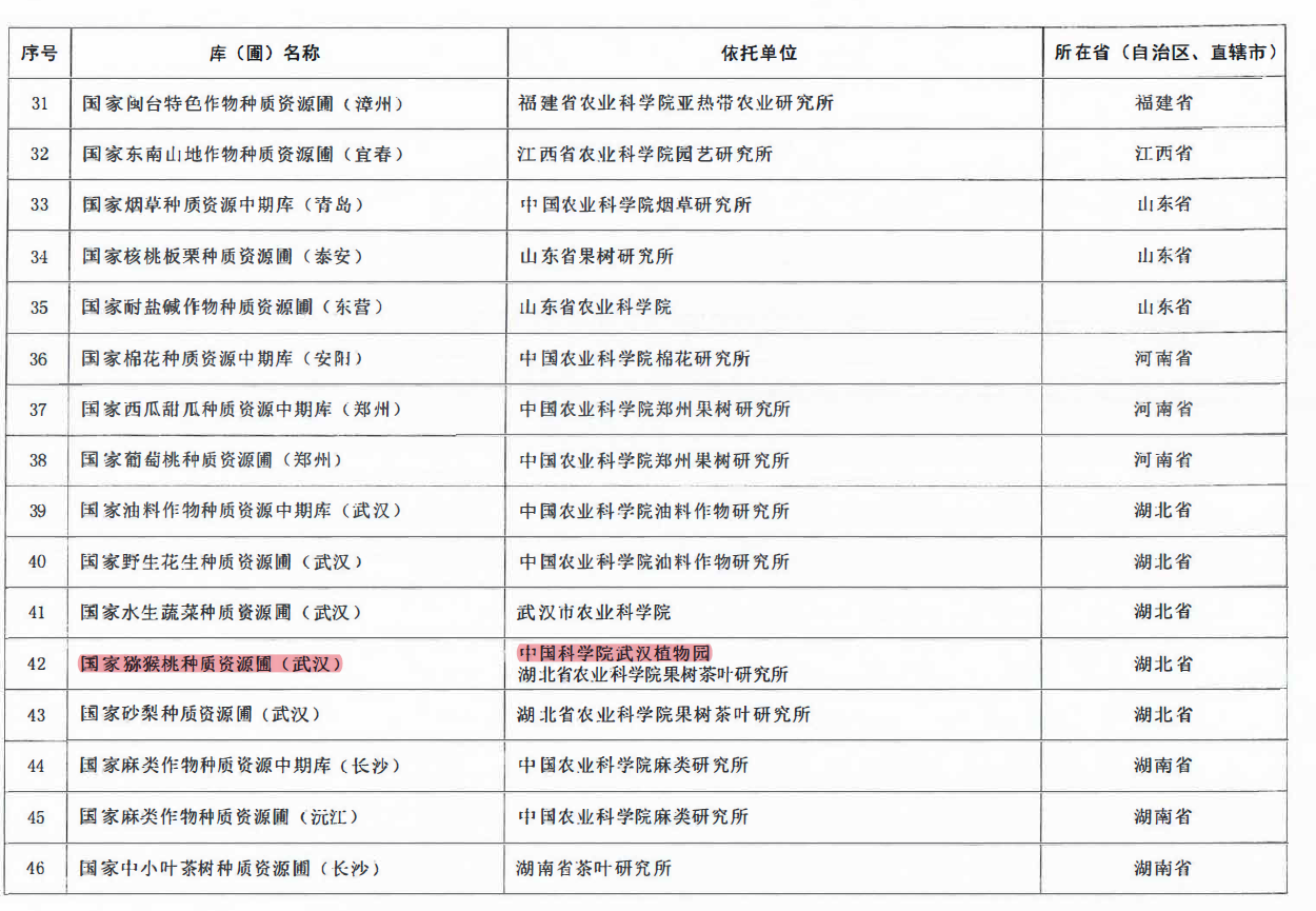 9月5日,农业农村部发布第一批国家农作物种质资源库(圃)和国家农业微生物种质资源库名单,以中国科学院武汉植物园为依托单位的国家猕猴桃种质资源圃(武汉)顺利通过评估,并成功入选农业农村部首批国家农作物资源库(圃)名单。