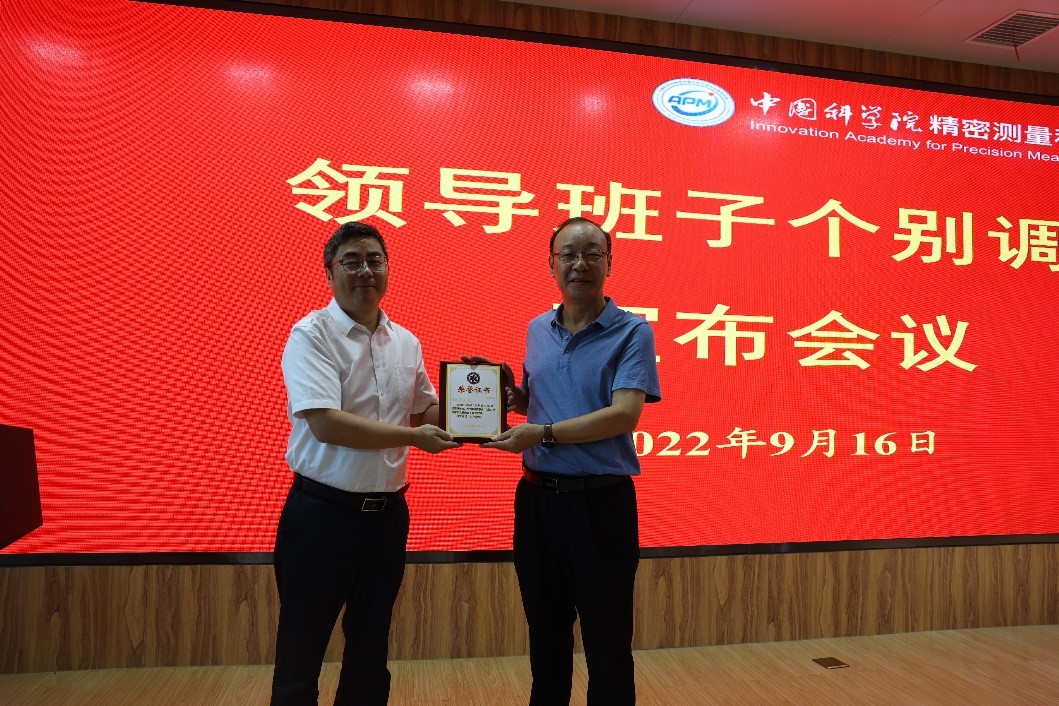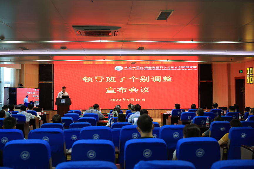 9月16日,精密测量院组织召开领导班子个别调整宣布会议。会议由中科院武汉分院分党组书记李海波主持,精密测量院领导班子成员、院士、新近离任的领导班子成员、党委委员、纪委委员、中层干部、研究部主任、支部书记、职工代表等参加会议。