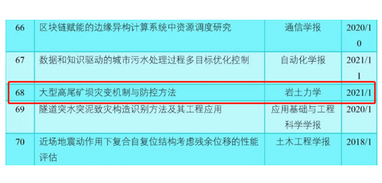 10月8日,中国科学技术学会公布了第七届优秀科技论文遴选计划入选论文。经过各学科领域专家推荐、初评遴选、终评审定并向社会公示,最终确定了95篇入选论文,中国科学院武汉岩土力学研究所杨春和院士团队撰写的《大型高尾矿坝灾变机制与防控方法》是入选论文之一。
