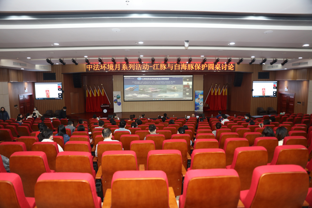 11月7日,由法国驻武汉总领事馆与中国科学院水生生物研究所联合主办的第九届中法环境月武汉站系列活动之一-“中法视角下的江豚与白海豚保护”科学圆桌会议(Regards croisés franco-chinois : la protection du marsouin et du dauphin blanc)在水生所举行。法国驻武汉总领事馆科教专员费奕(Maxime FERAILLE)先生, 科教项目专员宋思帆(Julien SAINT-SEVIN)先生,科技项目专员李珊珊女士,公关媒体项目官员刘婧娇女士出席会议。近100余人通过线上、线下的方式参与了本次会议。