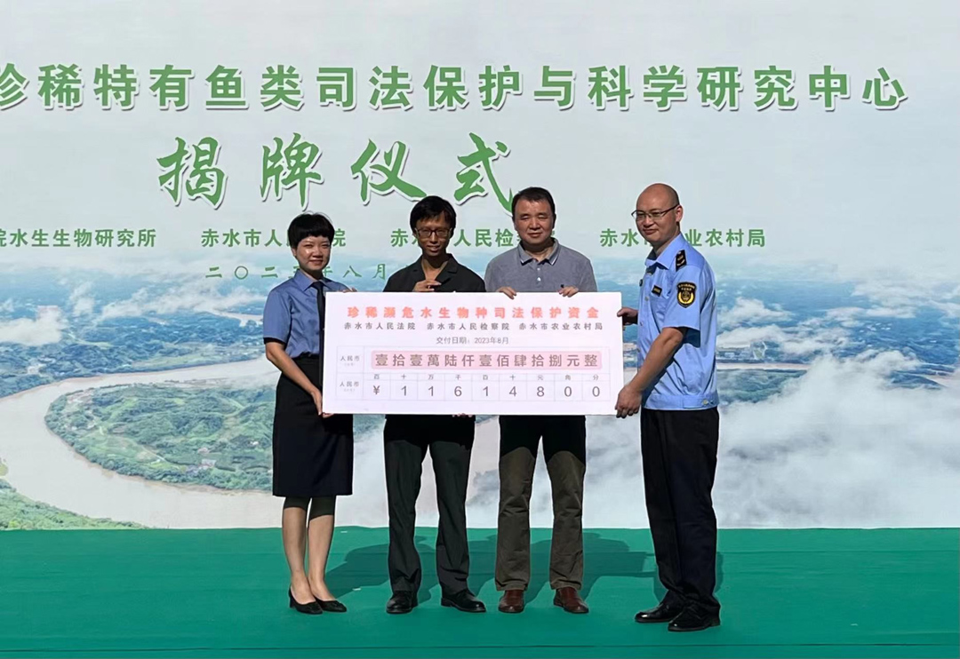 赤水市人民法院、赤水市人民检察院、赤水市农业农村局向水生所移交了首批“珍稀濒危水生物种司法保护资金”11.6148万元。该资金将主要用于珍稀特有鱼类的人工驯养繁殖技术研究及其野外种群恢复。