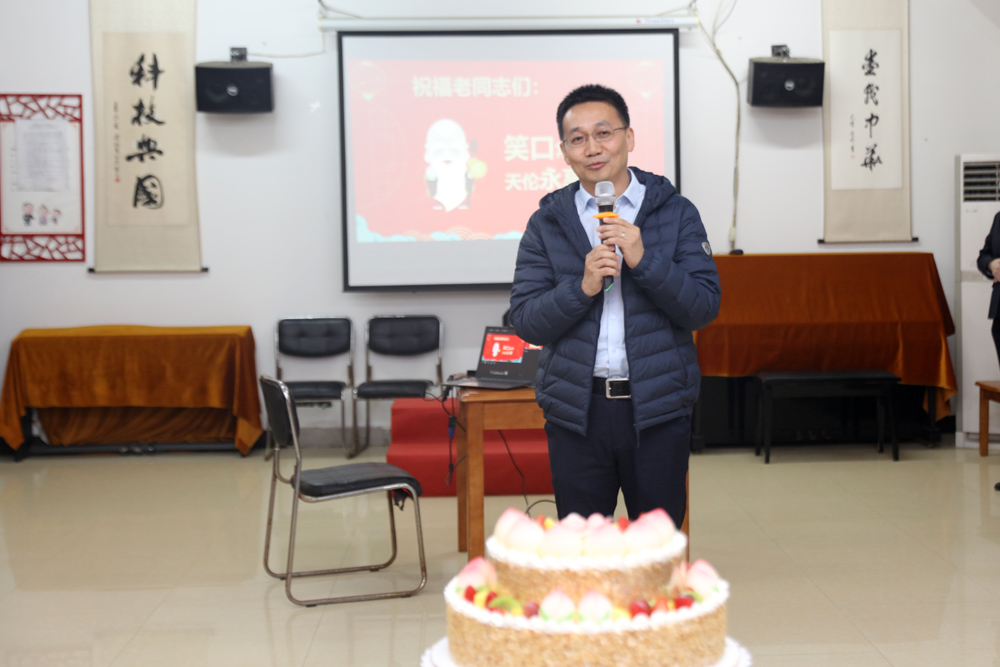 离退休党总支书记姚继忠向寿星们送上祝福。寿星代表白力群发表感言。