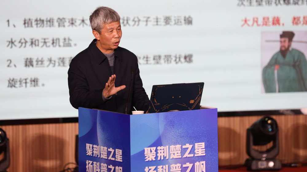 周德文主持“科学家说”论坛,中国工程院院士徐卫林、武汉市农业科学院蔬菜所研究员柯卫东以科学演讲的形式,向公众讲述科研成果的创造故事、科研人员的奉献故事、科技发展的进步故事,科学家们科技报国的奋斗豪情。演讲传递了科技造福人类生活的美好愿景,让公众获取科学知识,激发尊重科学、尊重创新的意识。