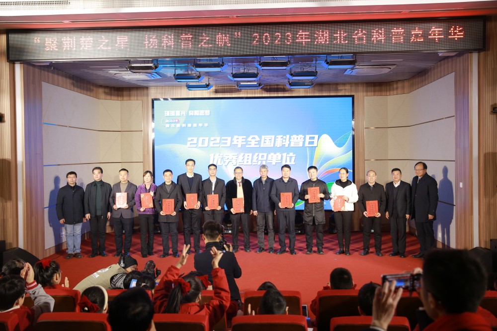 在科普剧场,一场科学的盛典徐徐拉开。童声诗乐舞、音乐小品、科普实验、微话剧,形式丰富的科普表演再现了荆楚大地科技人物的生动篇章。在科普剧场铿锵的声音里,公众听见了湖北省科技、科普工作者投身科创科普科智事业的深情表达。活动现场还为湖北省科协“心中最靓的宝”活动获奖者、全国科普日活动优秀组织奖获奖单位代表颁奖。