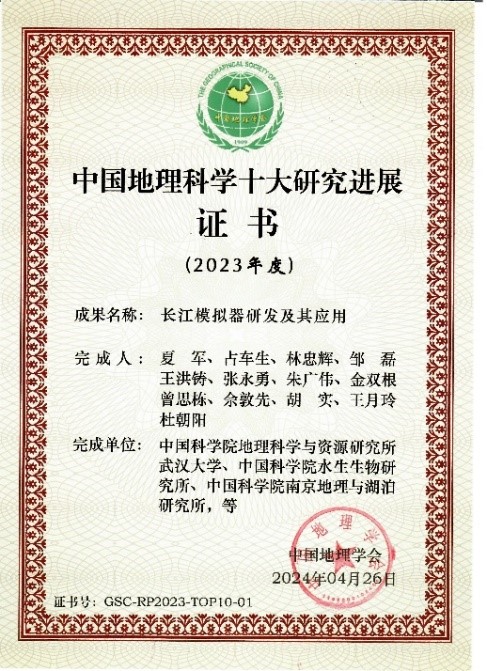 4月27日,中国地理学会公布2023年度“中国地理科学十大研究进展”,“长江模拟器研发及其应用”位居榜首。中国科学院水生生物研究所负责研发长江模拟器的生态环境板块。