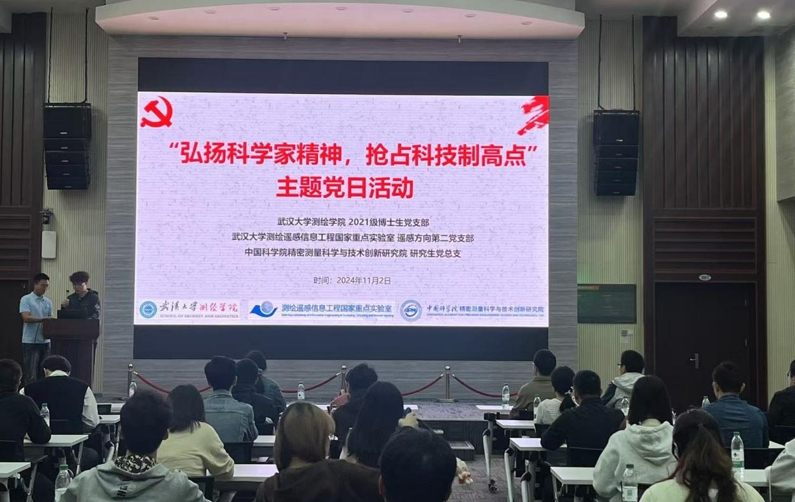 11月2日,精密测量院研究生党总支与武汉大学测绘学院2021级博士生党支部、武汉大学测绘遥感信息工程国家重点实验室遥感方向第二党支部联合举办“弘扬科学家精神,抢占科技制高点”主题党日活动,活动在武汉大学测绘学院举行,精密测量院研究生党总支书记蔡怡春以及双方近70名党员、入党积极分子参加本次活动。
