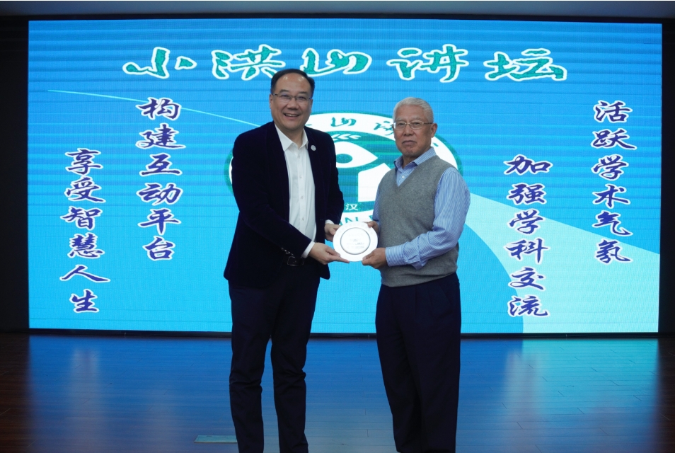报告结束后,薛强所长向殷建华教授颁发了“小洪山讲坛”纪念牌。
