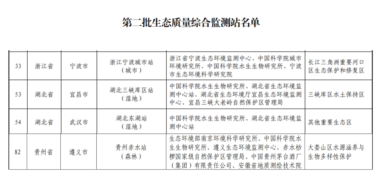 近日,生态环境部正式发布了《关于印发第二批生态质量综合监测站名单的通知》(环办监测函〔2024〕463号)。中国科学院水生生物研究所牵头申报的湖北东湖站(湿地)、湖北三峡库区站(湿地)以及参与申报的贵州赤水河站(森林)、浙江宁波城市站(城市)均成功入选,将成为全国生态质量监测网络的重要组成部分。