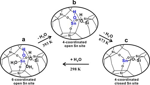 图2. Sn-β分子筛上不同锡物种间的相互转化