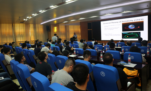 本次会议分为三个阶段:第一阶段(6月6日)由倪维斗教授、张洁教授和李润兵研究员分别为参会人员介绍了相对论中的引力磁效应、激光陀螺仪和原子干涉陀螺仪的相关研究。第二阶段(6月7日-6月9日)是为期三天的学术交流报告,报告主题围绕在空间和地面用高精度陀螺仪精确测量引力磁效应,其中美国和意大利科学家介绍了科学卫星(GP-B,LAGEOS,LARES)对引力磁效应的测量结果和研究计划,德国和意大利科学家介绍了在地面和地下用大尺度高精度激光陀螺仪精密测量地震、地球潮汐、极移、日长变化以及测量引力磁效应的方案研究,日本科学家报告了1.5公里地球物理应变激光干涉仪的测量结果,法国科学家介绍了航空引力测量和等效性原理检测的研究进展,我国科研人员介绍了激光陀螺仪、光纤陀螺仪和原子干涉陀螺仪的研究进展。第三阶段(6月10日)邀请国际著名科学家做大众科普报告,GP-B首席科学家、美国斯坦福大学M. Keiser教授详细介绍了GP-B引力探测卫星和高精度静电悬浮超导陀螺仪对爱因斯坦广义相对论原理的检验;德国慕尼黑理工大学U. Schreiber教授详细介绍了高精度激光陀螺仪及日长变化等精密测量应用,武汉物数所研究人员、研究生、天眷班学生及周边高校的师生及社会群众等三百多人怀着极大的兴趣听取了报告,科普报告特邀了童昕研究员和张洁教授担任翻译。