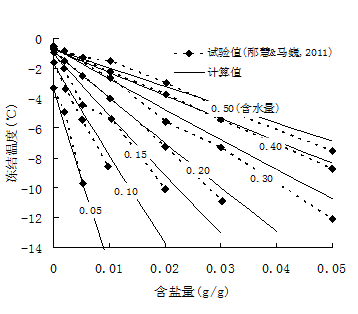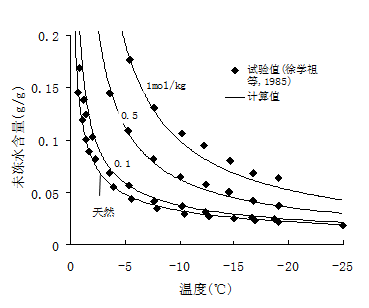 当温度降低至土的冻结温度以下时,土中水冻结成冰,此时的土被称为冻土。冻结温度,又称起始冻结温度、冻点,是指土中水刚开始冻结的温度。准确地测量或预测冻结温度至关重要,因为它是判断土是否冻结的一个重要指标(在很多情况下是唯一的指标)。与纯水不同,即使土冻住以后,土中仍然有一部分液态水没有冻住,这部分水被称为未冻水。未冻水含量反应了土的冻结程度,冻土的一系列物理力学特性,如导热性、渗透性、刚度和强度等,都与冻土未冻水含量有关。我国具有广泛分布的冻土区域以及大量采用人工冻结法施工的岩土工程,因此,提出一个能广泛适用的计算土冻结温度和未冻水含量的方法,对冻土学理论和冻土工程都具有重要的意义。