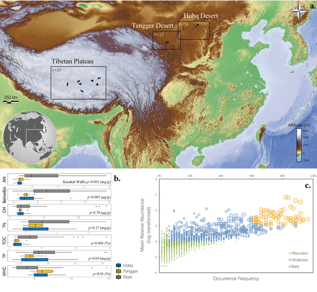 图1.研究地点分布、土壤功能特征及光合自养各亚类群识别