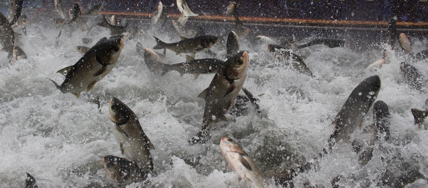 鲢鳙鱼是典型的东亚特有鲤科鱼类, 在我国是最大的经济鱼类养殖群体, 为我国提供了大量的优质水产蛋白资源。有趣的是,“胖头鱼”等亚洲鲤鱼作为中国畅销美食,在美国却有另一番景象:泛滥成灾。上个世纪70年代,美国的很多水域都会出现杂草和寄生虫,便从我国引进了不少鲢、鳙鱼等(与草鱼、鲤鱼一起被称亚洲鲤鱼)来解决这些麻烦。由于没有天敌,又不是当地的食用鱼类,反而演变成入侵物种泛滥成灾。