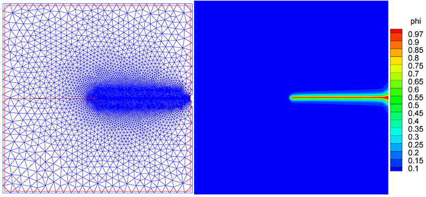针对这一问题,中国科学院武汉岩土力学研究所计算岩石力学团队率先提出了基于数值流形法的变分相场理论。该方法整合了相场理论和数值流形法在模拟裂纹扩展方面的优点。相比已有的有限元框架下的相场理论,相场数值流形法显著提高了裂隙物理模型的建立效率和计算精度。