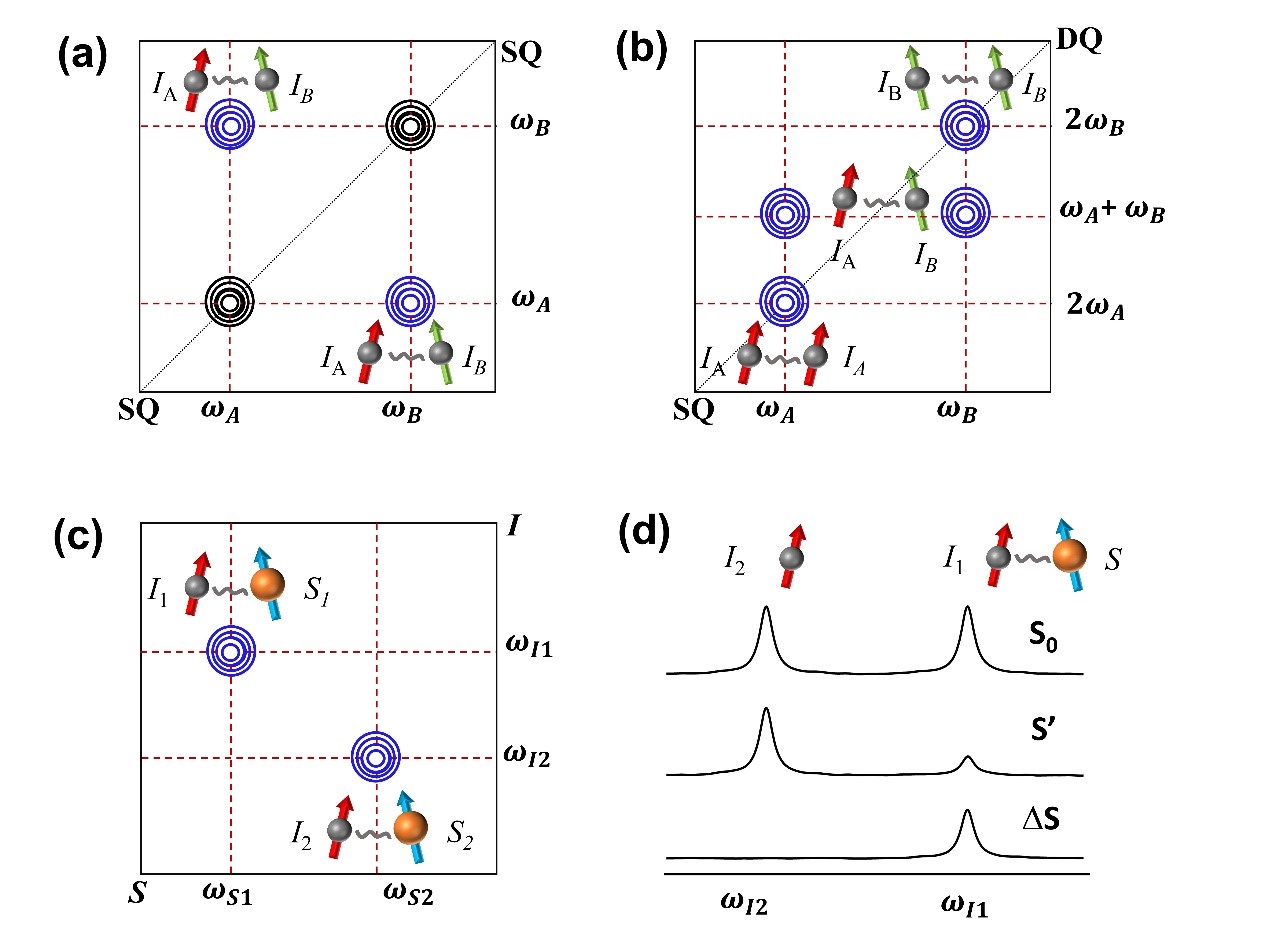用于催化材料表征的固体核磁共振相关谱:(a)二维SQ–SQ同核相关谱、(b)二维DQ–SQ同核相关谱、(c)二维异核相关谱和(d)一维REDOR双共振谱