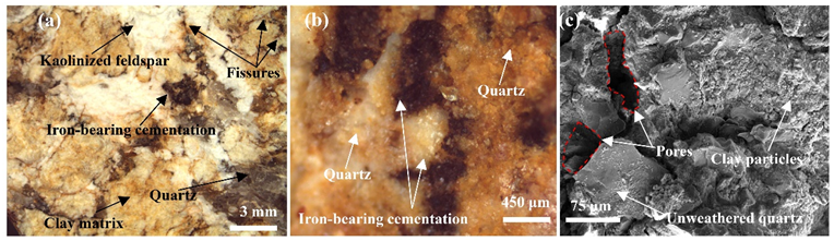 图1 花岗岩残积土的微观结构与胶结体现