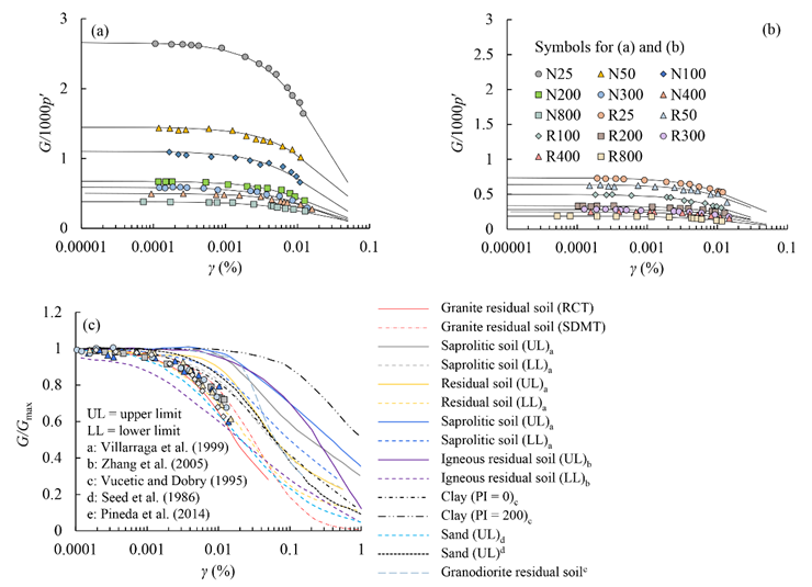 武汉岩土所特殊土力学组研究团队针对原状与重塑的厦门花岗岩残积土开展了系统的原位试验与室内共振柱试验,得到了该类土的小应变下剪切模量衰减规律,研究了母岩风化残留的胶结对刚度的影响,提出了考虑胶结效应影响的残积土的刚度性状。本研究成果可加深我国南方风化岩土的刚度特性的认识。