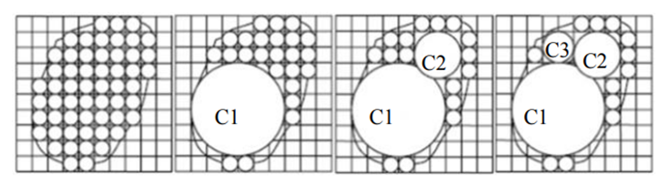 图4 平面不规则颗粒形貌模拟过程