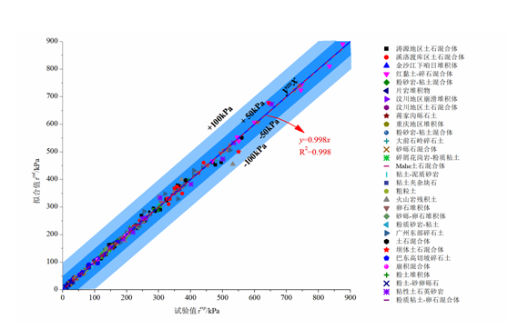针对这一问题,中国科学院武汉岩土力学研究所岩土工程抗震安全组科研人员以国内外大量土石混合体力学试验数据统计分析为基础,从含石量和土石接触面强度角度阐述了土石混合体与工程岩体组分结构的相似性,基于广义Hoek-Brown准则思想,提出了适用于骨架结构、含石量范围为30%-90%的土石混合体等效力学强度模型,给出了土石混合体单轴抗压强度与经验参数的定量表达方法;在考虑混合体遇水强度劣化的条件下,基于等效力学强度模型给出了堆积体边坡力学参数确定方法;以小磨公路堆积体边坡为代表性类均质二元结构边坡,基于有限元和极限平衡理论分析了考虑参数劣化条件下,不同降雨模式及张裂缝对堆积体边坡稳定性的影响,揭示了降雨作用下堆积体边坡的失稳力学机制,为工程设计和灾害防治提供科学依据与技术保障。