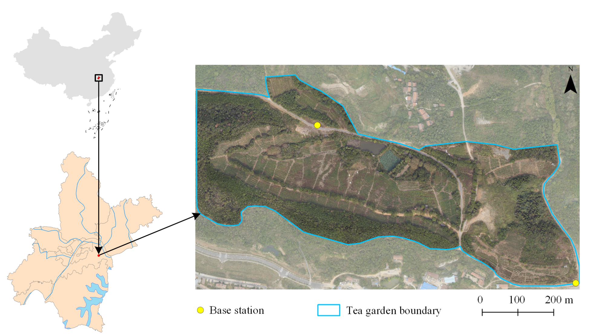 茶树是一种多年生阔叶常绿灌木或小乔木,在世界各地广泛种植和消费,是重要经济作物。中国是茶叶种植大国,种植面积和茶叶产量居全球第一。茶树多生长于山区或丘陵地区,大范围监测十分不便,目前时空信息也较少用于茶叶种植和管理。为了获取准确的茶树空间分布,监测茶树生长,提高茶叶产量和品质,非常有必要准确监测茶树空间分布和状况,以制定有针对性的管理措施。近些年随着无人机技术的快速发展,无人机遥感逐渐成为精准农业科研和管理中的一种重要手段。