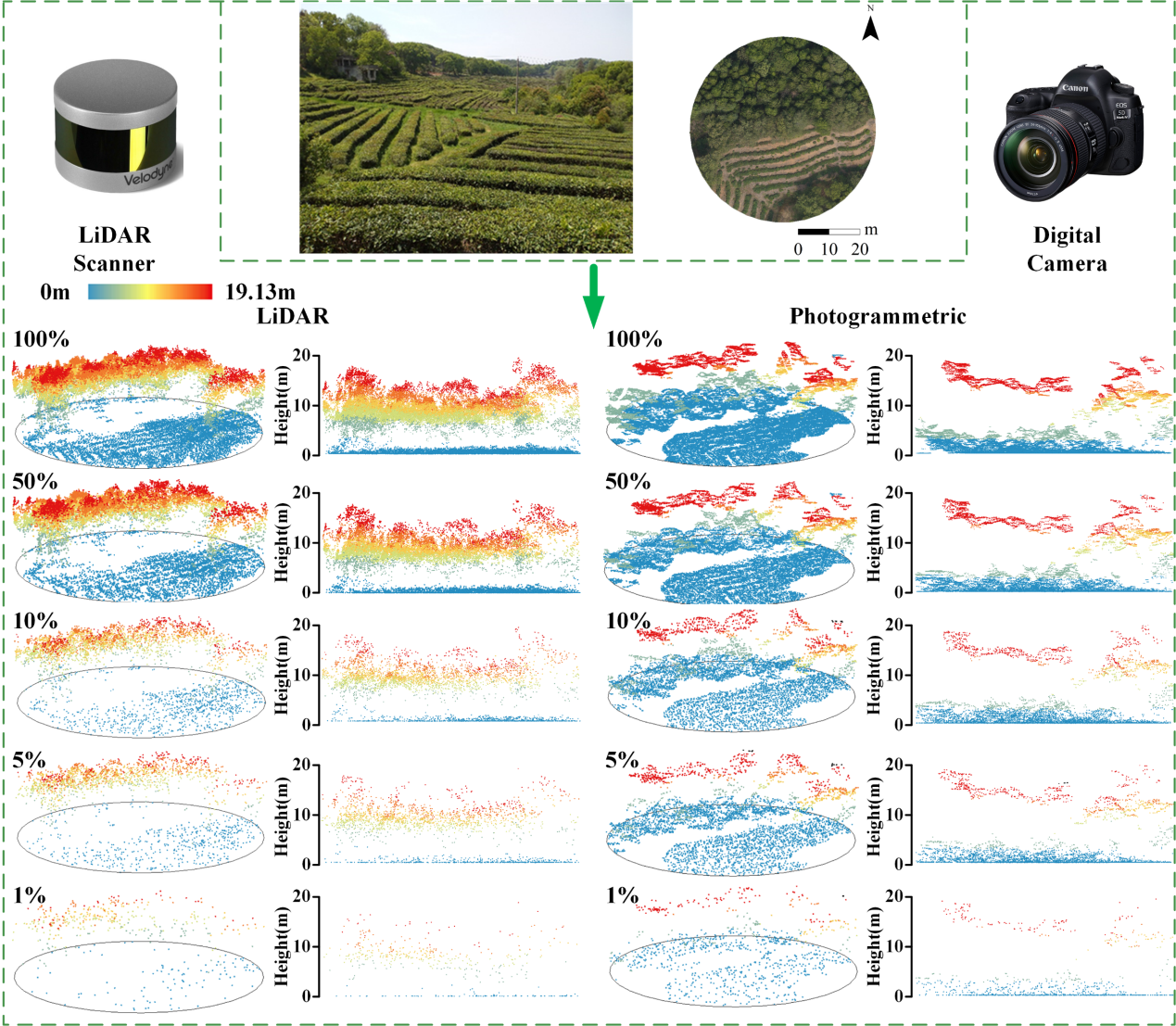 中国科学院武汉植物园系统生态学研究团队联合中国地质大学地理与信息工程学院万波教授团队开展了茶树无人机遥感研究,探究了无人机遥感在监测茶树上的有效性,在国际遥感领域期刊Remote Sensing发表题为“Effects of UAV-LiDAR and Photogrammetric Point Density on Tea Plucking Area Identification”的研究论文。