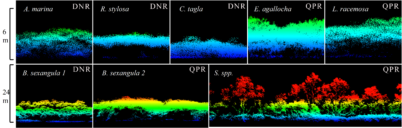 图3 不同红树林树种在激光雷达点云上的立面图