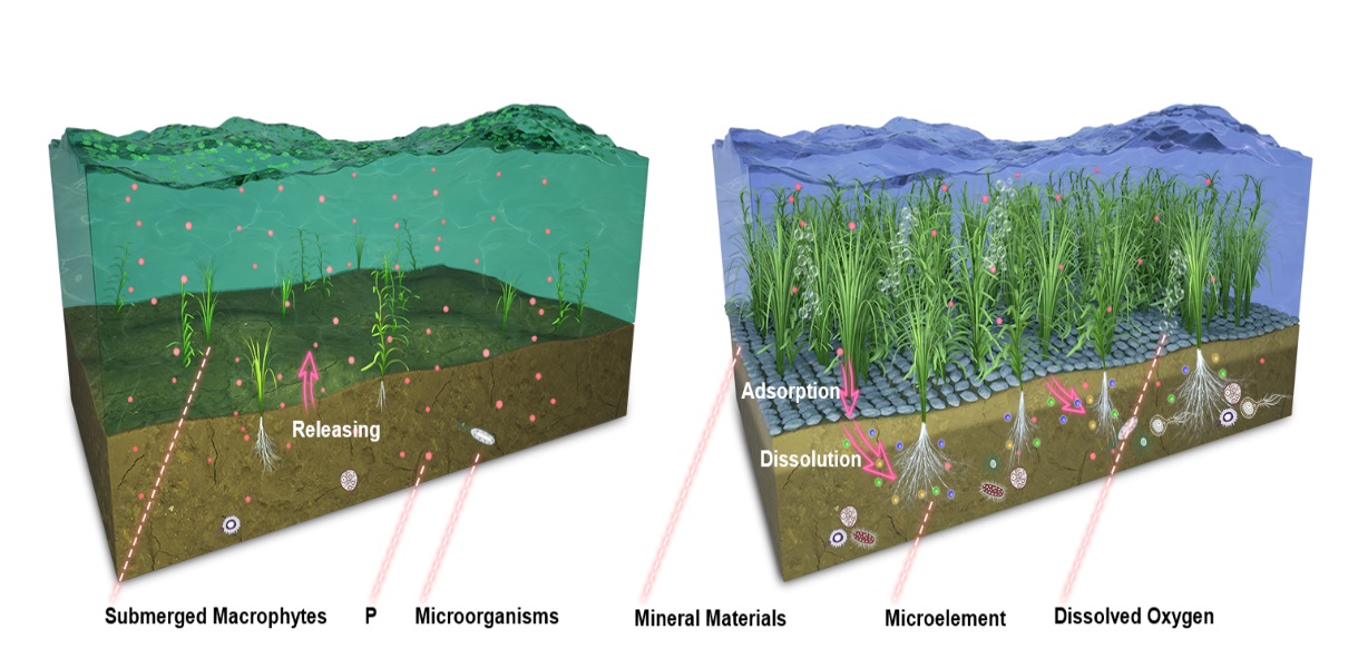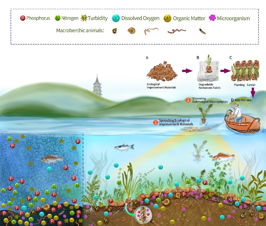 图3 基底改良和沉水植物恢复技术工程应用示意图